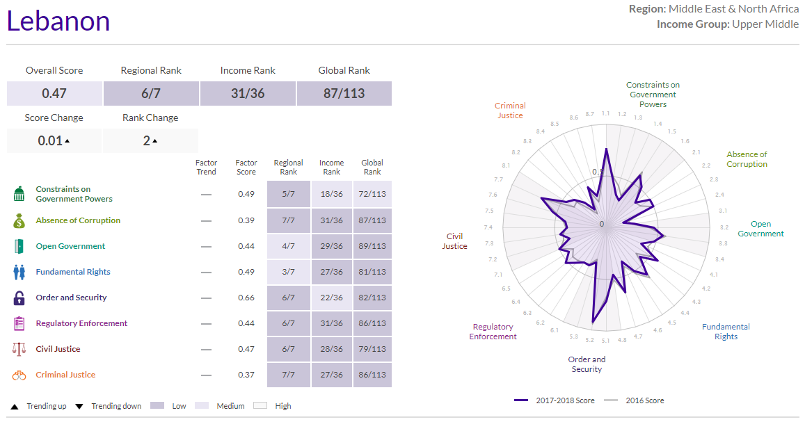 WJP"، اعتمادا على 110 آلاف استقصاء أسري، و 3 آلاف استقصاء لخبراء