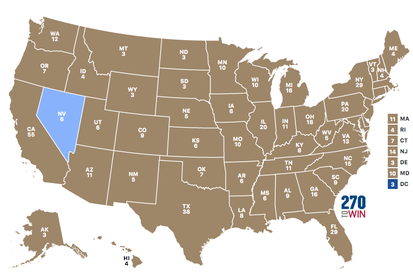 ونيفادا خسرها ترامب في انتخابات عام 2016، بفارق ضئيل عن منافسته آنذاك من الحزب الديمقراطي هيلاري كلينتون.