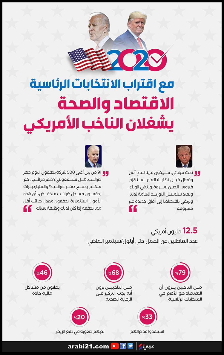 وأظهر استطلاع للرأي أجراه مركز "بيو" للأبحاث، أن أغلب الناخبين يرون أن الاقتصاد أكبر انشغالات الناخب الأمريكي، وحلت الرعاية الصحية ثانيا.