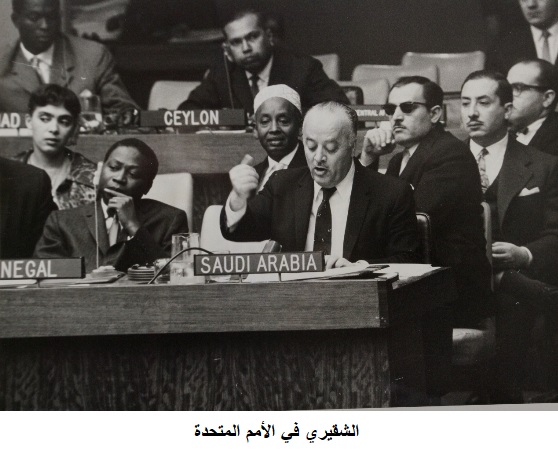 اختير من قبل المملكة العربية السعودية ليشغل منصب وزير الدولة لشؤون الأمم المتحدة، ثم عين سفيرا دائما للسعودية في الأمم المتحدة. وكان نشاط الشقيري أثناء فترة عمله بالأمم المتحدة مركزا حول الدفاع عن القضية الفلسطينية وقضايا المغرب العربي.