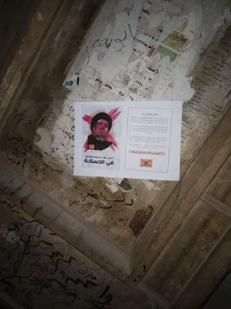 تحديث حول #حزب_الله في #الحسكة: ظهرت صباح اليوم الثلاثاء تقارير وصور من قلب المربع الأمني الذي يسيطر عليه النظام وسط المدينة أظهرت ملصقات ومنشورات مناهضة لنشاط حزب الله في المنطقة وقد توزعت في عدة أماكن وضعها مجهولون pic.twitter.com/Fk8VVD7BeE